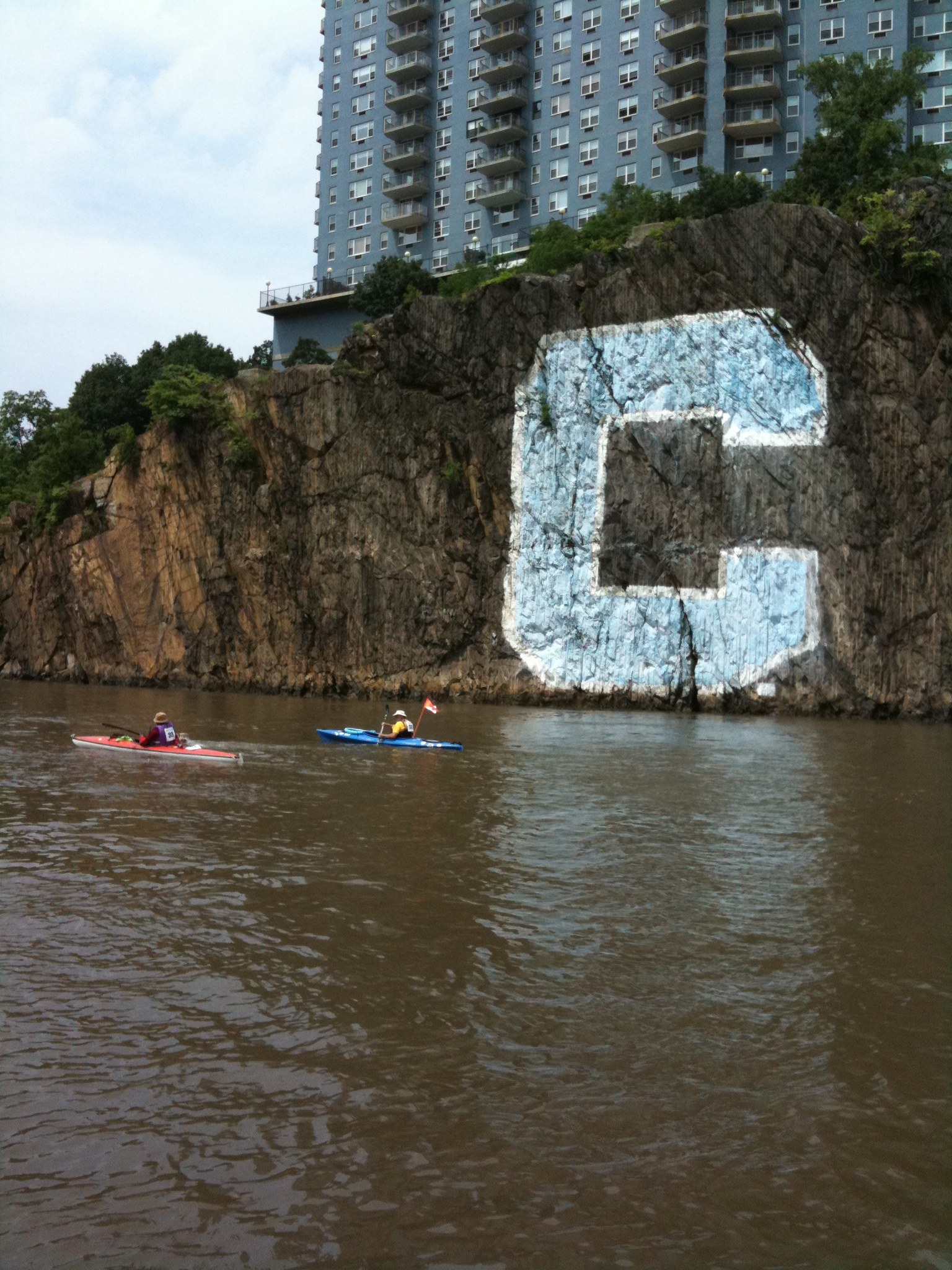 How cool is this?! Courtney just swam past the big C of Columbia University. She’s over the GI issues, said she feels good and we’re about to enter the Hudson. Home stretch!!!!!