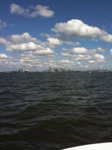 Got the Manhattan skyline in sight. Crazy boat traffic, with tankers