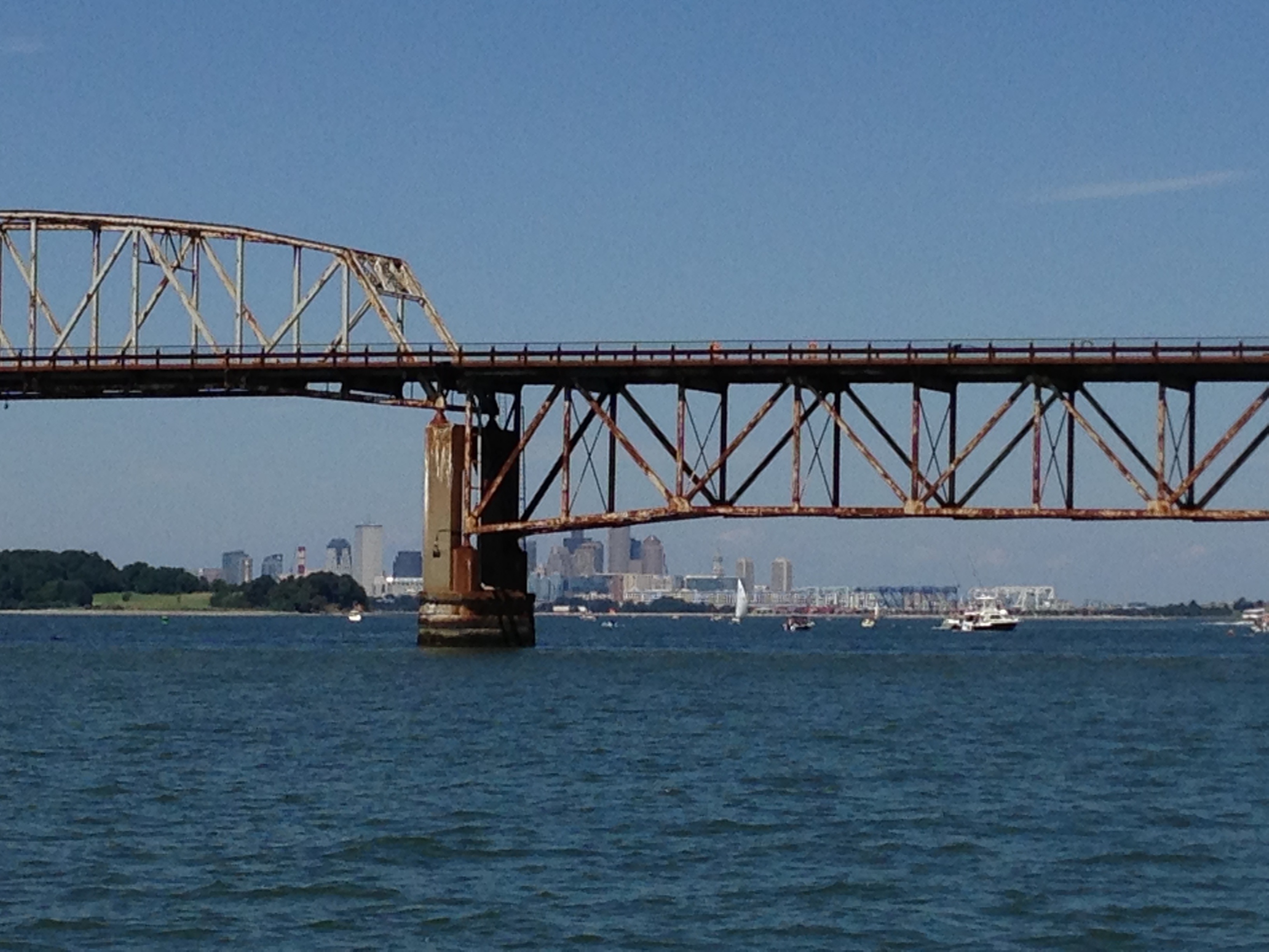 Coming up to the bridge. Boston skyline in the distance. Beautifully Boston Strong.